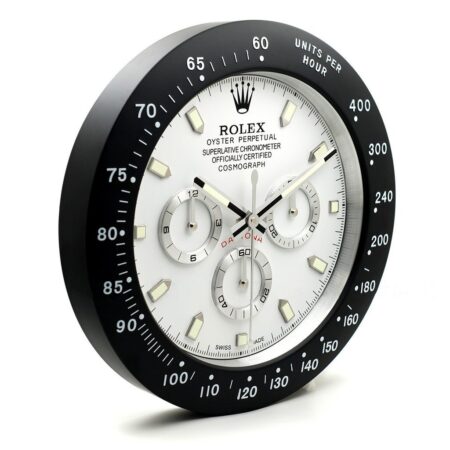 Be the first to review “Rolex Wall Clock – DAYTONA WHITE DIAL BLACK BEZEL | Affordable Elegance”
